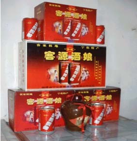 宁化县“客源酒”选用优质糯米、泉水、天然植物酒为原料,采用上千年的传统陶瓷酒缸酿造工艺,未添加酒精、色素、防腐剂、增稠剂,是正宗纯天然绿色饮品。酒精度7-12%(v/v),老少皆宜,夏天加冰,冬天加热风味更佳,亦是烹调的上等佐料。产品为易拉罐可原酒酿。
