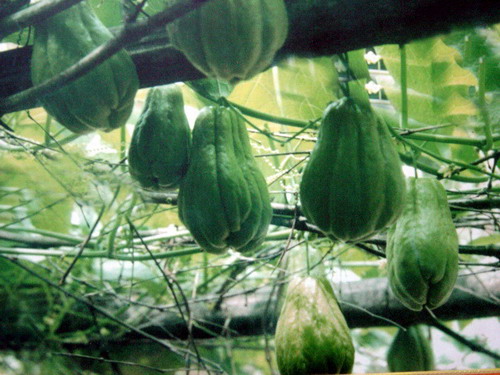 佛手瓜又名"隼人瓜"、"菜稀梨",属胡芦科稀特蔬菜品种。原产于墨西哥和西印度群岛。由于它营养丰富,具有多用性和经济效益高等优势,已逐步成为菜篮子工程中重要组成部分和群众脱贫致富的一条有效途径。佛手瓜含有多种人体所需要的维生素和矿物质,其含量比其他蔬菜高几倍乃至十几倍。据报道,佛手瓜对高血压病人亦有明显的治疗效果,常食佛手瓜可利尿排钠,有扩张血管,降压之功能。常食含锌较多的佛手瓜可以提高儿童智力。佛手瓜对男女因营养引起的不育症,尤其对男同志性功能衰退有较好的疗效。