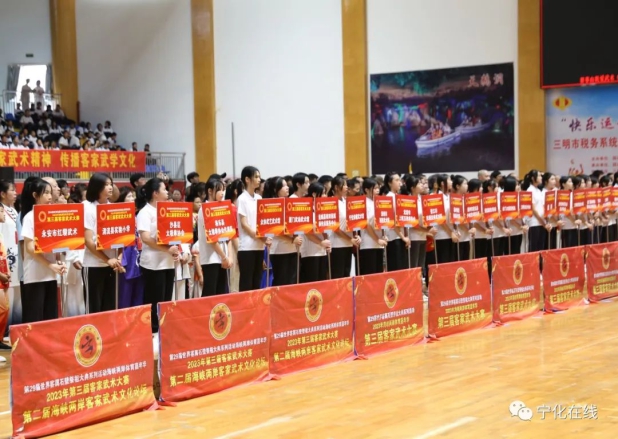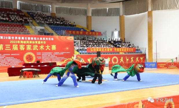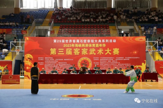 10月5日,2023年海峡两岸体育嘉年华第三届客家武术大赛在宁化县体育中心开赛,吸引了来自台湾、福建、江西等地的武术团体、武术协会等33支队伍共500余名武术爱好者参加比赛。