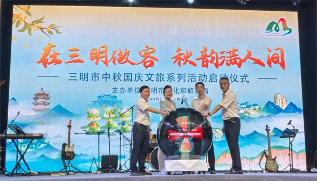 9月26日晚,“在三明做客 秋韵满人间”三明市中秋国庆文旅系列活动启动仪式,在将乐激情启幕。市文旅局党组成员、副局长周靖怡,将乐县委常委、宣传部部长林振宇,县委常委纪旺福,县文旅局主要负责人刘振海共同按下启动球,“在三明做客 秋韵满人间”中秋国庆文旅系列活动正式拉开序幕,开启一场秋韵风光、民俗体验、文旅盛宴的节日狂欢。
