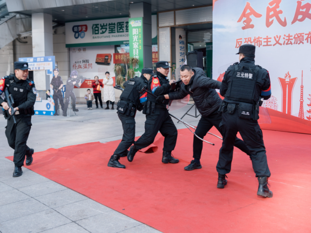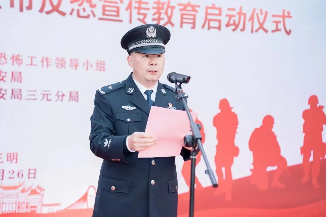 2025年12月26日上午,“全民反恐 共创平安”——《中华人民共和国反恐怖主义法》颁布10周年全市反恐宣传教育启动仪式在三明阳光城时代广场举行。本次活动由三明市反恐怖工作领导小组主办,三明市公安局、三明市公安局三元分局承办,旨在通过多元化的宣教形式,回顾法治反恐十年历程,展示我市反恐工作成果,普及法律知识与防护技能,进一步筑牢全社会反恐防恐的铜墙铁壁。三明市公安局党委副书记、常务副局长郭日建出席活动并致辞。市委政法委、市委统战部、市教育局、市民宗局等三明市反恐怖工作领导小组成员单位代表,三元区反恐怖工作领导小组成员单位代表,三明学院、三明医学科技职业学院师生代表,重点目标单位安保负责人及周边市民群众参加了现场活动。