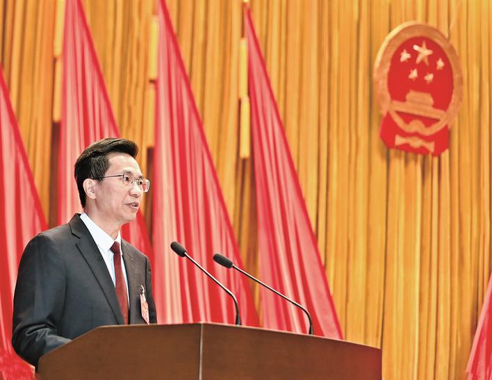 市长陈岳峰作政府工作报告。(周志鸿 摄)