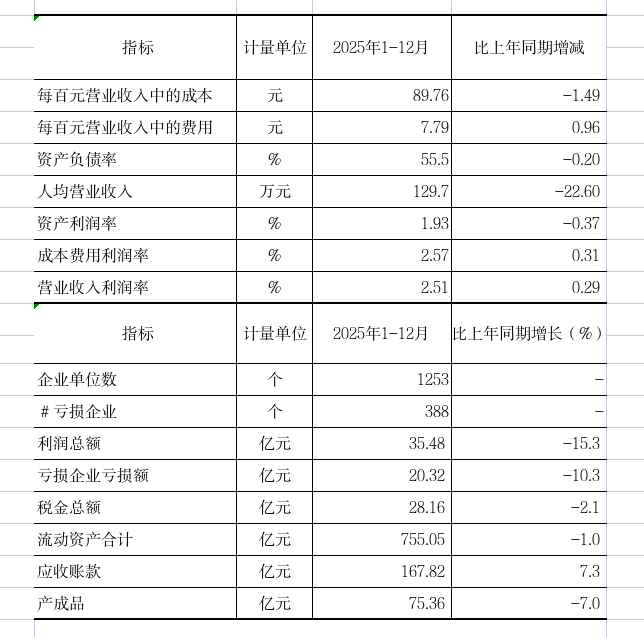 2025年1-12月三明市规模以上工业经济效益主要数据