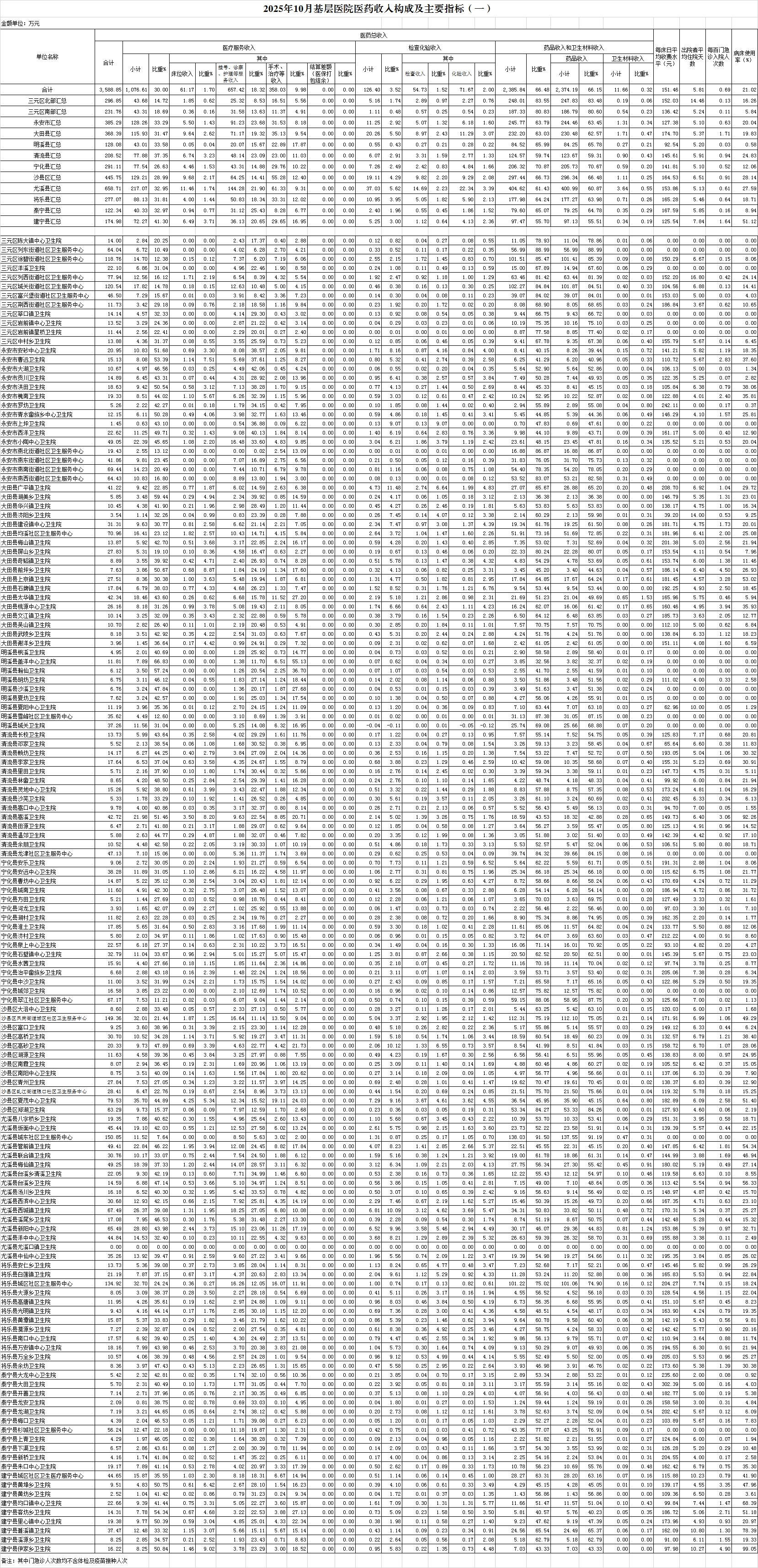 1-10月份基层医疗机构医药总收入38612.84万元(其中村所收入4799.01万元),去年同期43319.89万元,同比减少4707.05万元,下降10.87%,其中:医疗服务收入11480.85万元,占医药收入29.73%(床位收入691.54万元、手术治疗护理等服务收入10789.31万元,结算差额85.93万元),去年同期12525.70万元, 医疗服务收入同比减少1044.85万元,下降8.34%;检查化验收入1595.14万元,同比下降31.61%;药品收入25403.39万元,去年同期28325.70万元,同比减少2922.31万元,下降10.32%,药占比65.79%,去年同期65.39%,同比增长0.40个百分点;卫生材料收入133.46万元,较去年同期136.22万元,同比减少2.76万元,占医药收入0.35%,较去年同期0.31%,同比增长0.03个百分点。入院人次39862人次,去年同期58513人次,同比减少18651人次,下降31.87%,其中明溪县、泰宁县、宁化县分别下降63.05%、51.11%、46.50%;门急诊人次5105770人次(其中村所诊疗1662771人次),去年同期5103351人次,同比增加2419人次,增长0.05%(基层诊疗量占比为47.30%,较去年同期的47.45%减少0.15个百分点);每门诊次均费用68.39元,去年同期73.31元,同比减少4.91元,下降6.70%;出院者平均费用903.19元,去年同期978.00元,同比减少74.81元,下降7.65%。